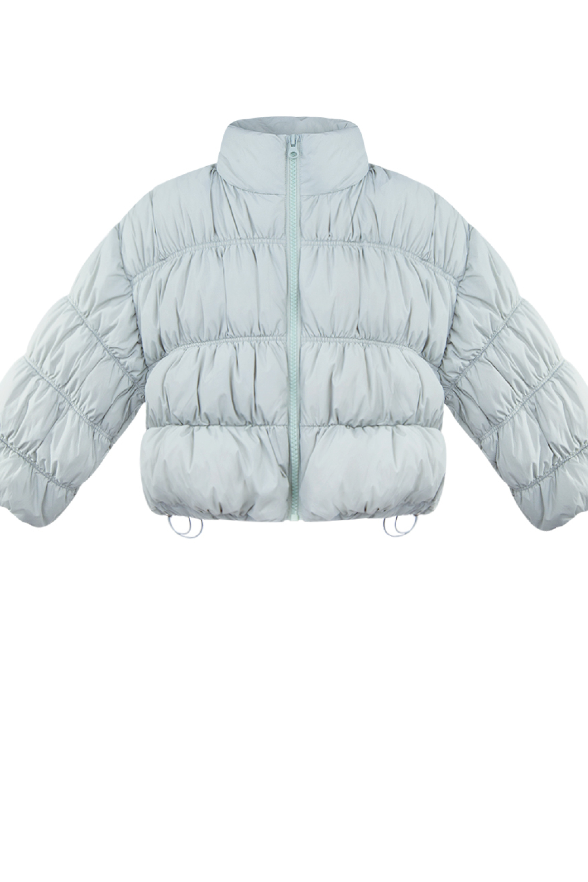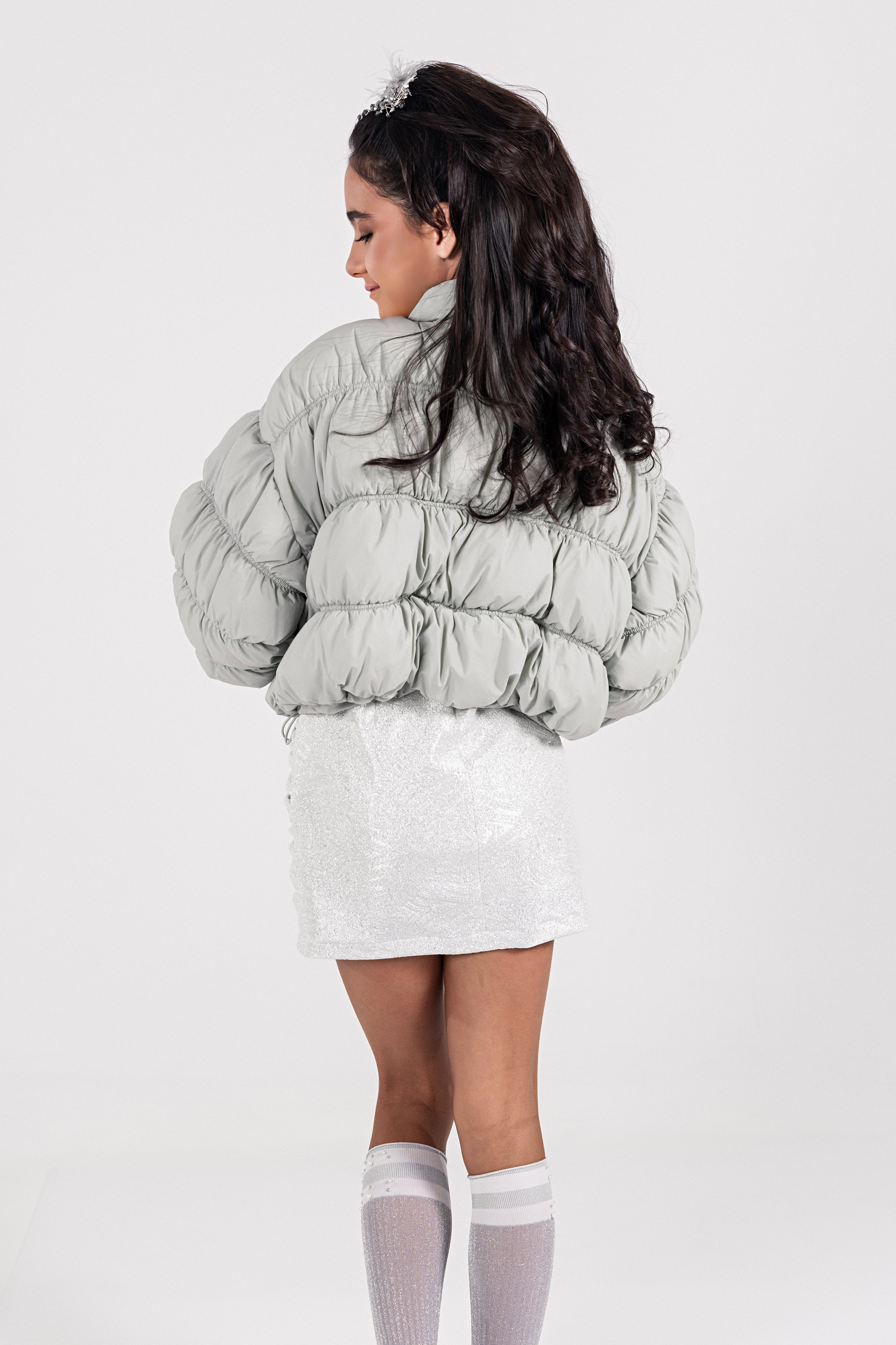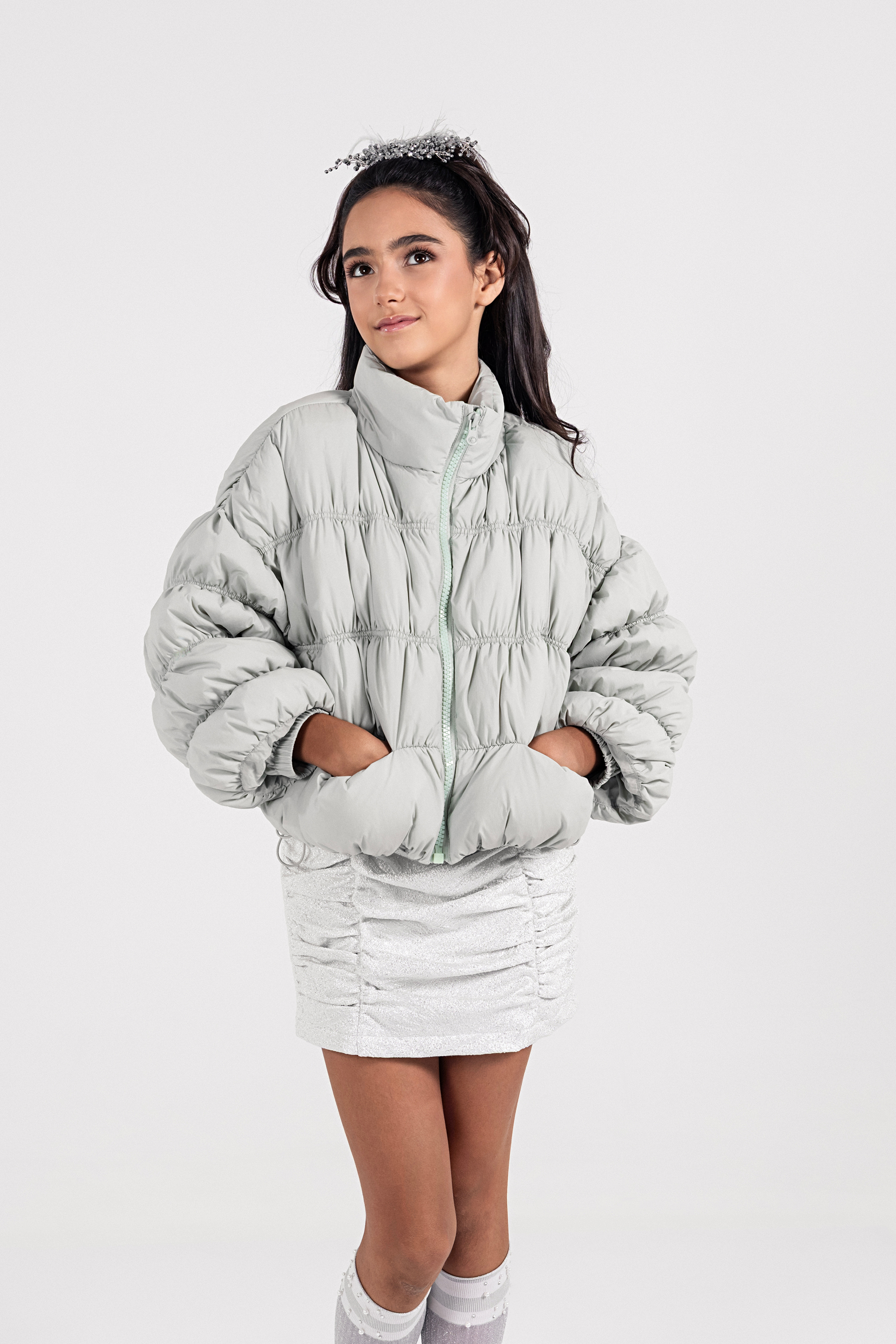 Junona внася уютен стил в зимните дни с това бледожълто пухено яке. Проектирано с мека подплата и копринена подплата, то е с дълги бухнали ръкави, предни джобове с цип и скрито закопчаване с цип отпред. Регулируемият еластичен подгъв добавя комфорт и модерен щрих. Леко, но топло, то е перфектната комбинация от практичност и чар - идеално за изява в хладни приключения.
