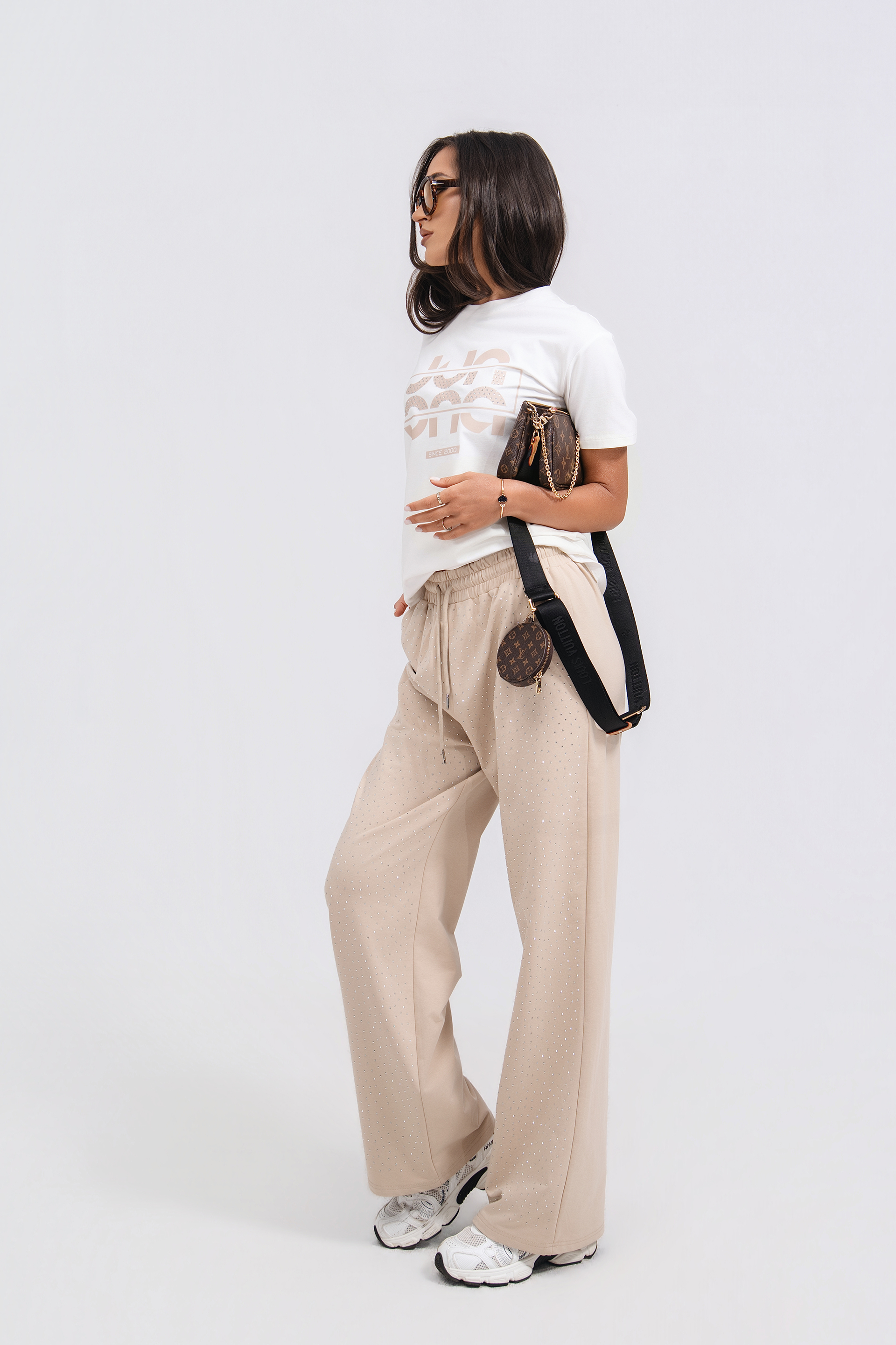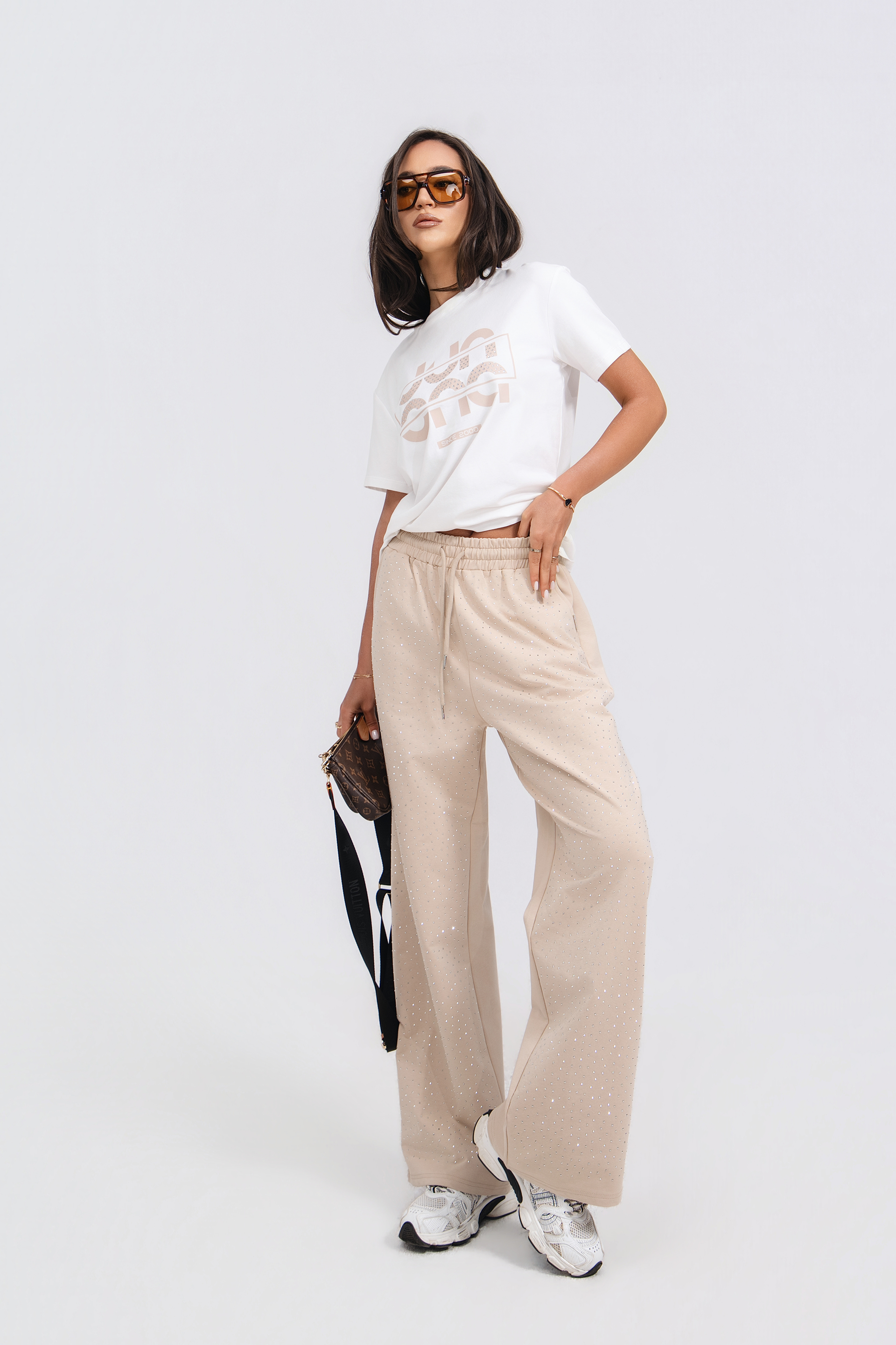Описание: Спортен комплект от две части. Суитшърт със свободна кройка, дълъг ръкав с маншет и качулка с връзки. Закопчаване с цип. Панталон със свободна кройка и еластичен колан с връзки. С два джоба.