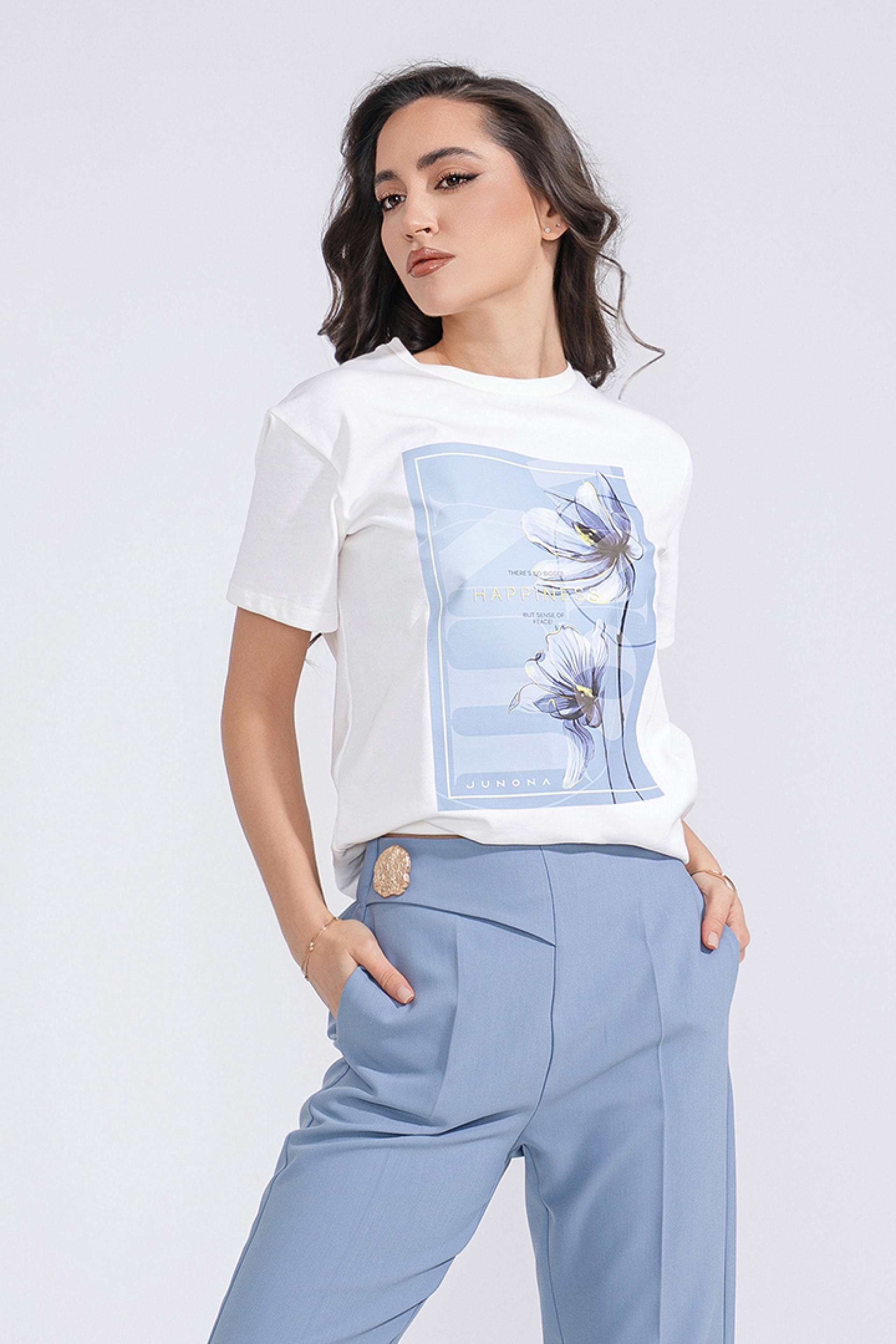 Тениска от памучна тъкан Junona Blue